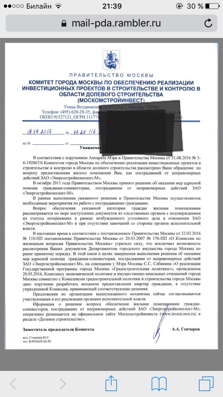 - отправлено в ДГИ 24 комплекта док-в на Хлобыстова и 9 — на подписании