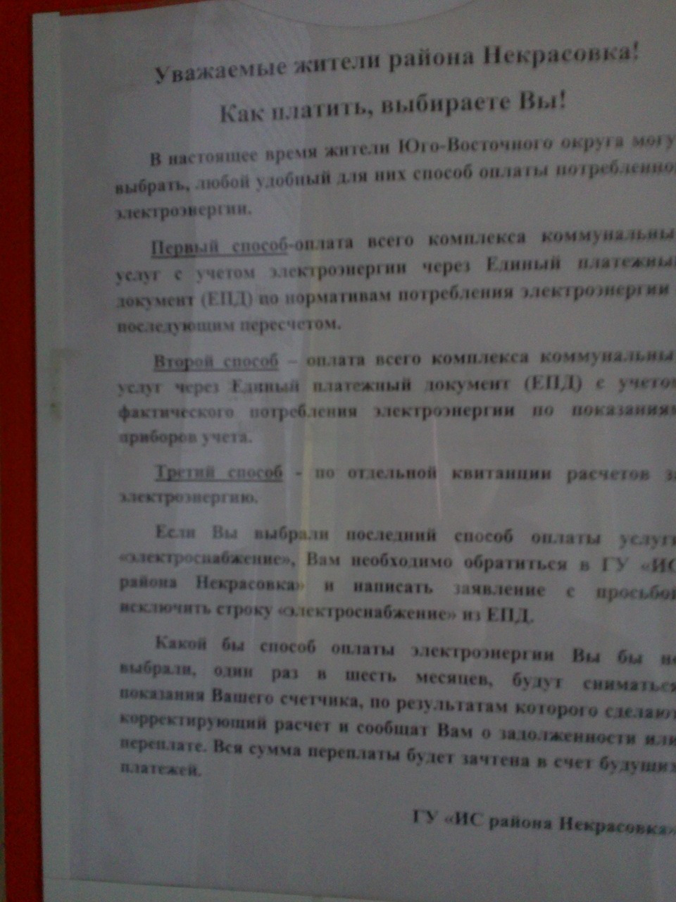 Real_PZ писал(а):А обязательно ехать в Мосэнергосбыт в Некрасовку? Я позвонил по центральному телефону Мосэнергосбыта и мне сказали, что можно приехать на Волгоградский пр-т. 163 и там заключить договор. Или меня не так поняли?
