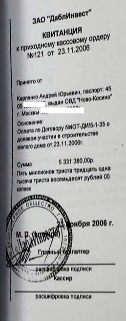 АК82 писал(а):Алексей, ЮТ. Покупал через НДВ у ДаблИнвеста, оформляли сделку где-то на проспекте Буденного, в банке, в ноябре 2006го